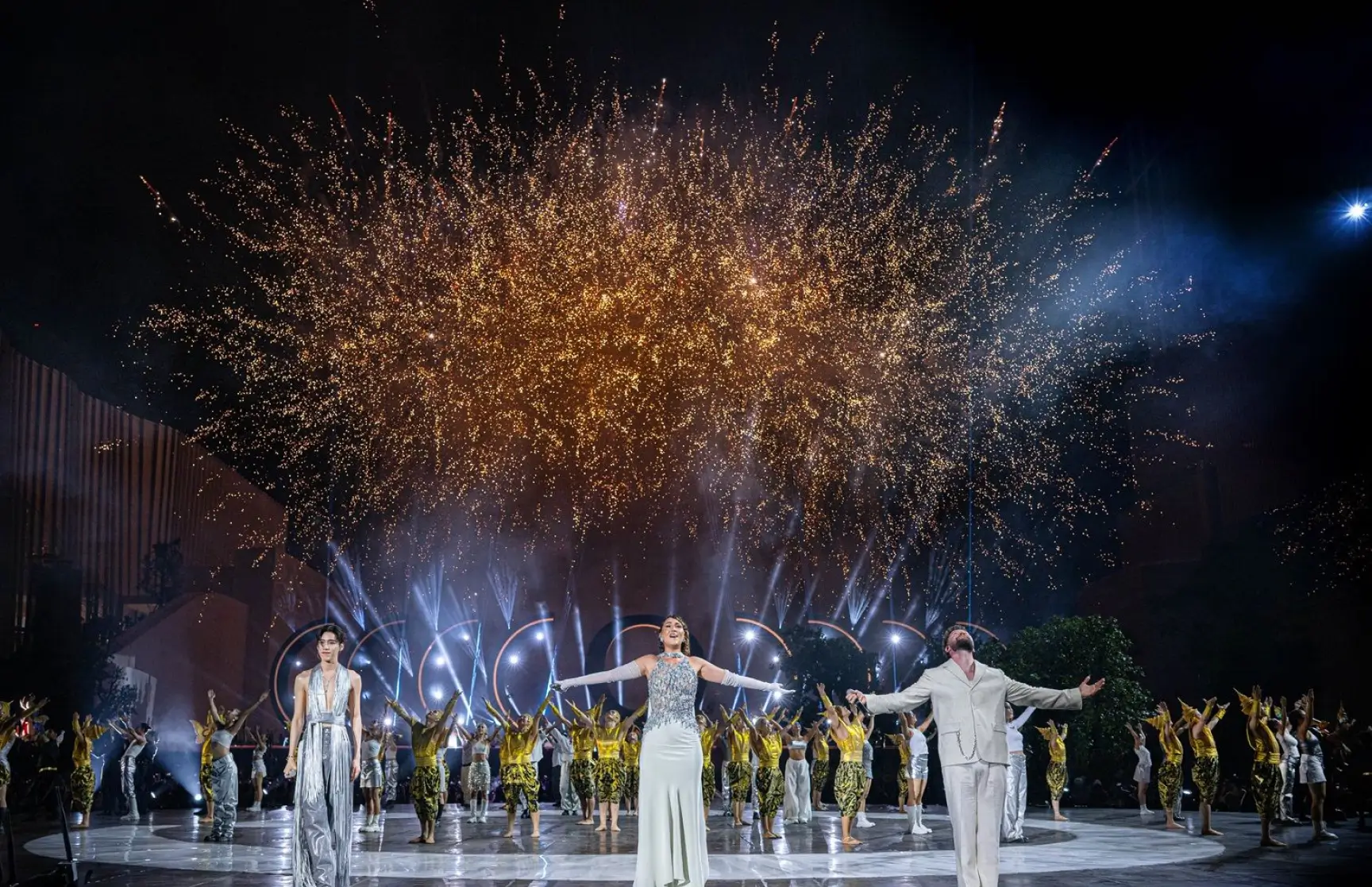The 45 minutes show transformed the city itself into a stage: dancers and internationally acclaimed singers performed alongside breathtaking aerial acts suspended from the towers above, while precision lighting design and pyrotechnics turned the skyline into something closer to a dream than a city block.